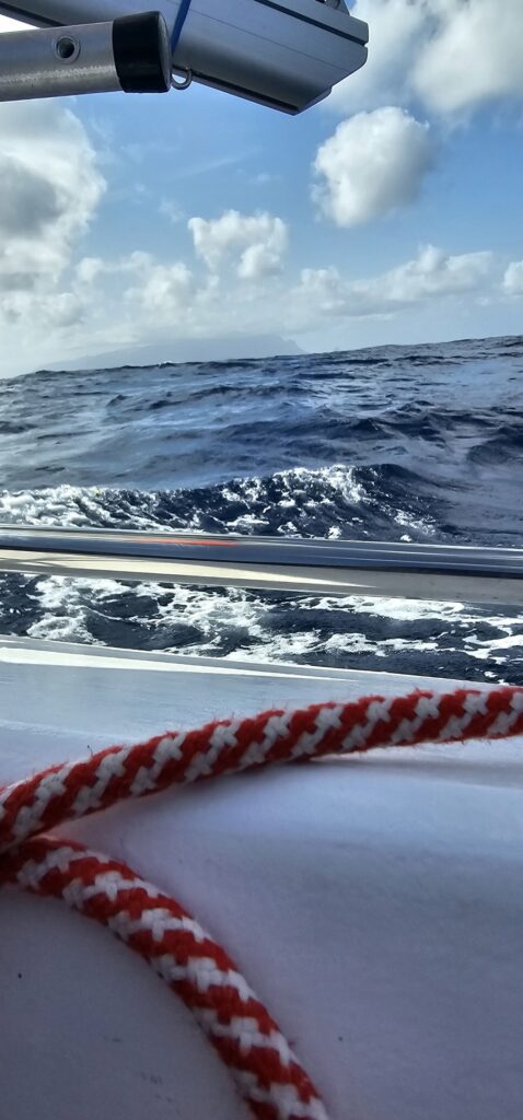 Wieczorem znów mocno. Chyba nawet mocniej. Znów lina za rufę, zamykam się szczelnie i idę spać. Jacht walczy. Przecież wiem jak i kto go zrobił. Ufam.